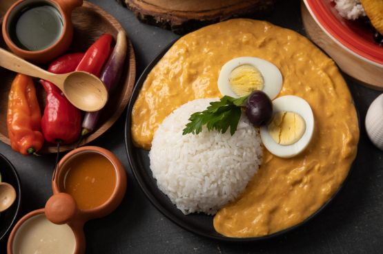 Otro de los platos peruanos imprescindibles es el ají de gallina, un guiso cremoso hecho a base de pollo deshilachado, ají amarillo y pan remojado en leche. Se sirve con arroz blanco, huevo duro y aceitunas negras, ofreciendo un contraste de sabores suave pero delicioso. Su origen se remonta a la época colonial, y hoy en día sigue siendo un plato fundamental en la cocina peruana.